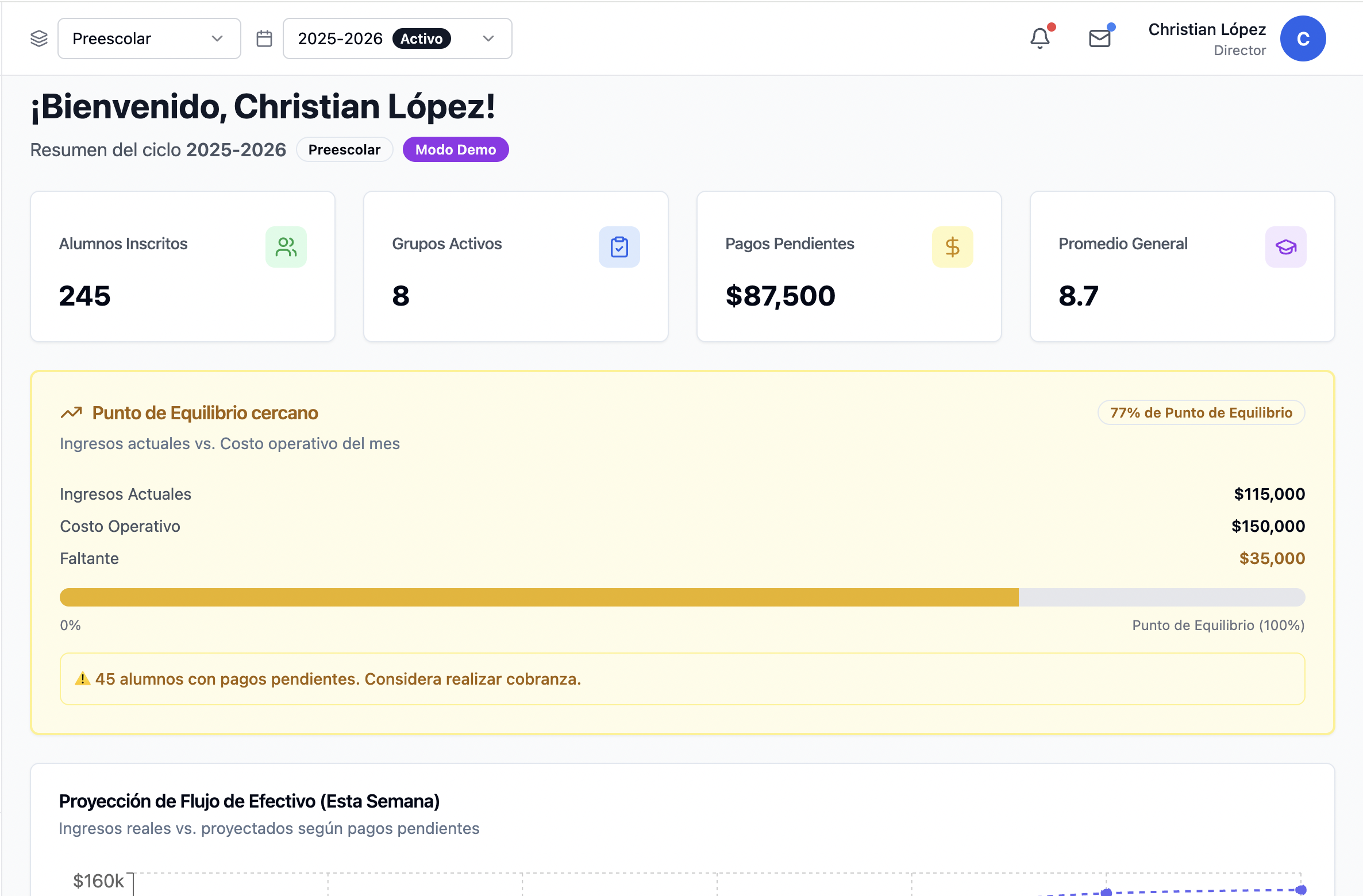 La plataforma financiera diseñada para colegios en México. Facturación 4.0 ilimitada, pagos con tarjeta y recordatorios inteligentes.